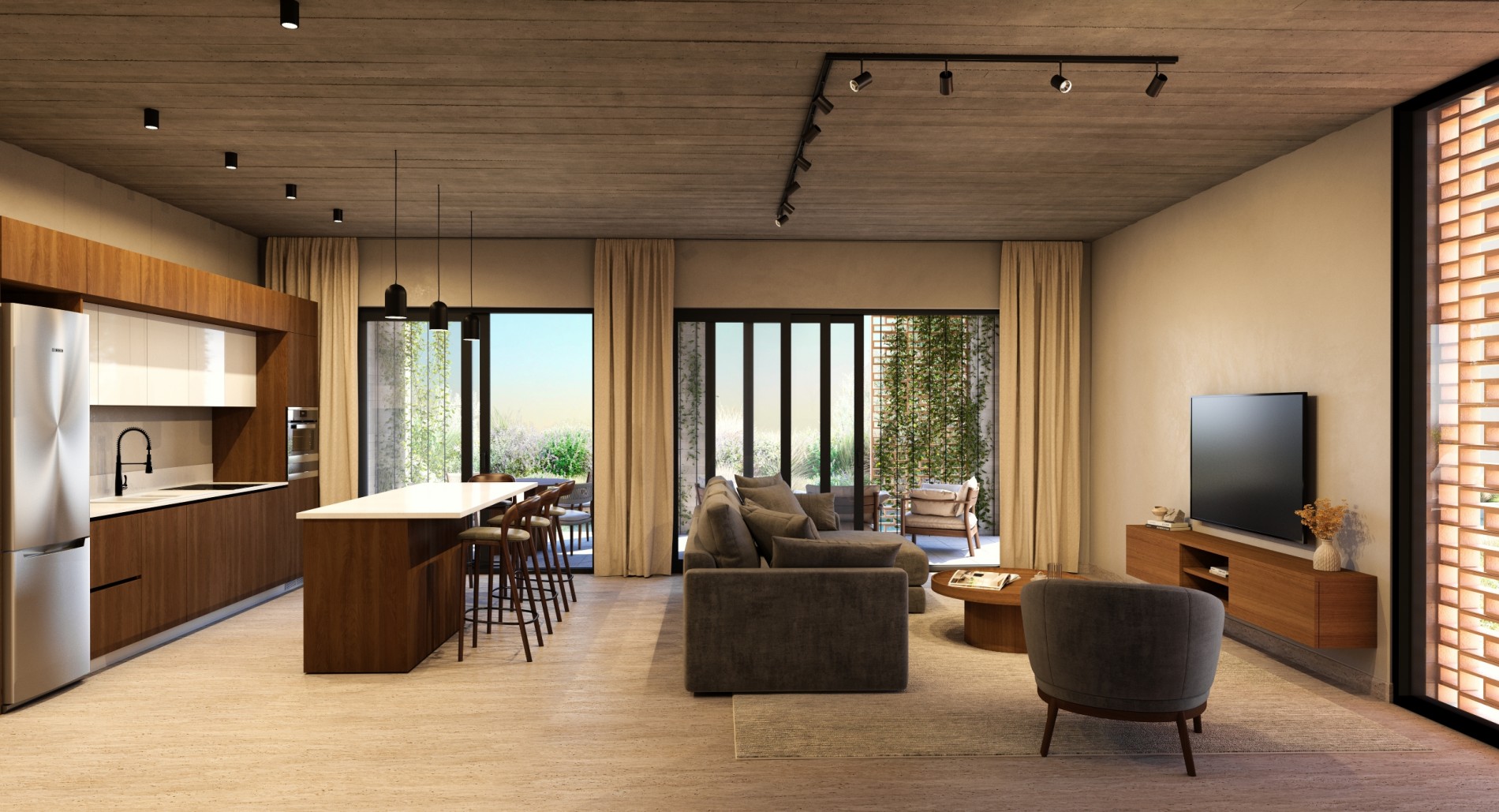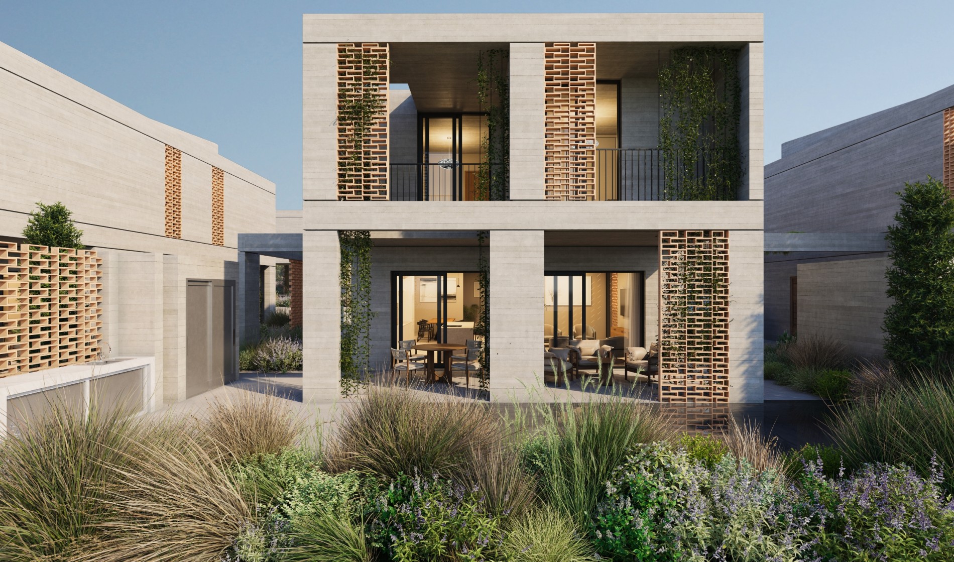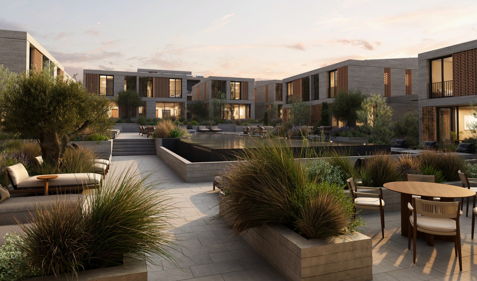 Defined by board formed concrete and sculpted brick screens, Avalon Valley presents a distinctive visual identity. The development consists of 36 modern homes and two identical apartment buildings housing 32 residences including two- bedroom and one-bedroom apartments as well as studios. Seven homes feature the added luxury of a private pool.