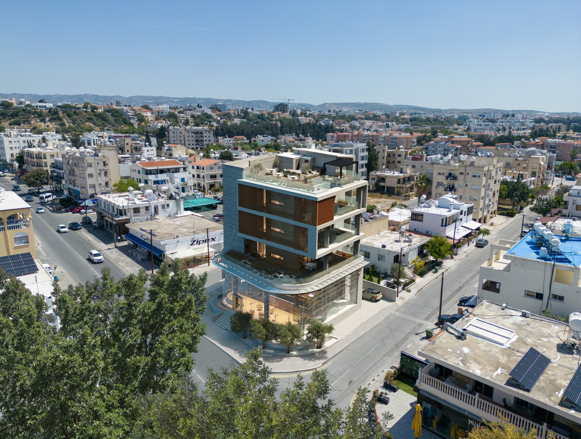 IBC楼宇 是帕福斯一座现代且精致的商业地标。该项目提供宽敞的办公空间、展厅、室内停车位及带有露台的屋顶花园,为城市中心的商业活动营造出卓越的环境。